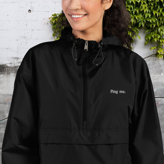 "Ping me." Premium Embroidered Champion Unisex Packable Jacket